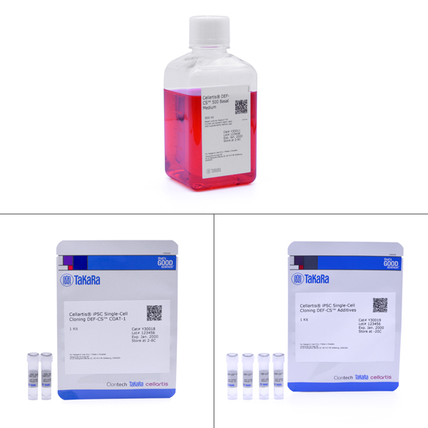 通過電穿孔的方法對hiPSCs進行有效的基因編輯,Takara提供重組Cas9蛋白質(zhì)和產(chǎn)生大量sgRNAs所有必要的試劑,用于電穿孔hiPSCs。后續(xù)與Cellartis iPSC Single-Cell Cloning DEF-CS Culture Media Kit (Code No. Y30021)一起使用,用于進行基因編輯后的單細胞克隆形成和擴增。單細胞克隆擴增后,hiPSCs可以使用Cellartis DEF-CS 500 Culture System (Code No. Y30010)繼續(xù)培養(yǎng)。