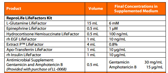 ReproLife?基礎(chǔ)培養(yǎng)基不含抗菌劑和酚紅。Lifeline?提供抗菌劑和酚紅,但它們不是真核細(xì)胞增殖所必需的