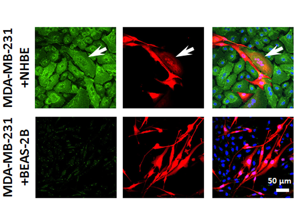 Furukawa, et al. demonstrates BEGM? BulletKit? is suitable for culturing Lonza’s NHBEs as well as to support co-cultures with lung epithelial cell line, BEAS-2B, and breast cancer cell lines, MCF-7 and MDA-MB-231. The breast cancer cell line showed differences in morphology and proliferation rates when cultured with primary NHBE cells vs. BEAS-2B cell line. The paper highlights the importance of using primary NHBE cells as a side-by-side control when conducting experiments with normal lung epithelial cell line such as BEAS-2B because the non-transformed primary cells can validate or offset the data generated using cell lines.