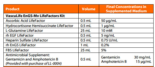 VascuLife EnGS內皮細胞培養(yǎng)套裝 LL-0002 1kit